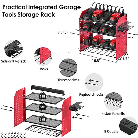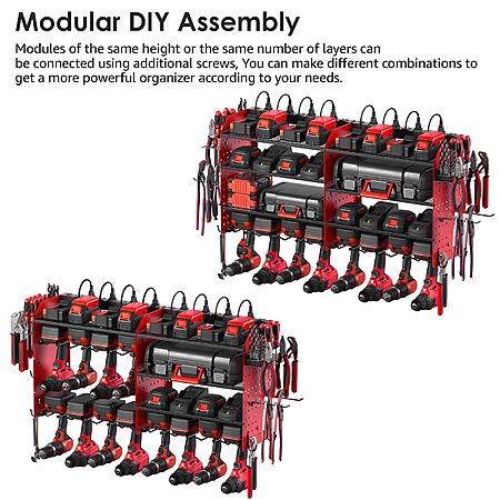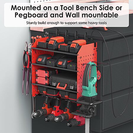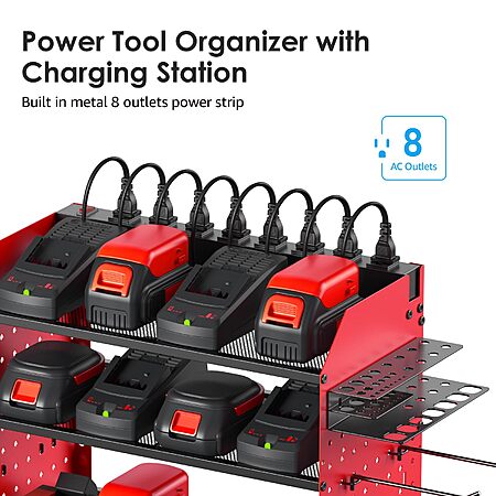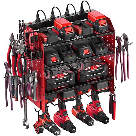 CCCEI Modular Pegboard Rack Power Tool Organizer with Charging Station. 4 Layer Wall Mount Drill Holder, Red Tool Battery Charger Organizer $34.99