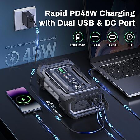 AMPBANK 3000A Portable Car Jump Starter with 150PSI Digital Tire Inflator, 12V Car Battery Booster Pack with LED Lighting $42.74