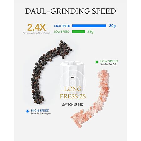 Model: FORLIM Gravity Electric Salt and Pepper Grinder Set with 2-Speed Grinding, 800mAh Rechargeable, Upgraded Auto-Reverse Clean After Stop, Automatic Pepper Mill Grinder with White LED, Black & White