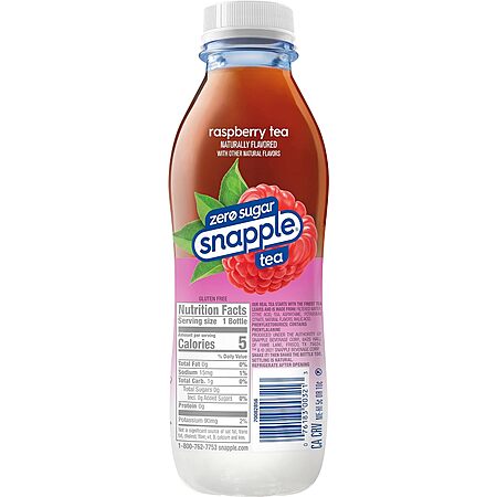 Snapple Zero Sugar Raspberry Tea, 16 fl oz recycled plastic bottle, Pack of 12~$8.53 With S&S @ Amazon