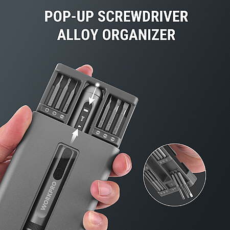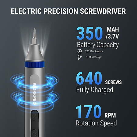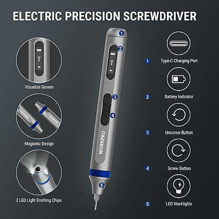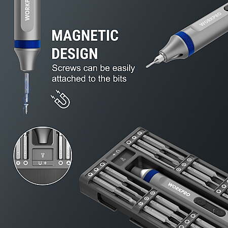 | Product Description: | For 25 years, WORKPRO has adhered to its simple core value -- to support and encourage the "Can Do" attitude of its customers with high-quality, affordable tools that are among the most dependable performance tools on the market. WORKPRO is part of the family of companies of Hangzhou GreatStar Industrial Co., Ltd., a leading global developer, manufacturer, and supplier of tools found in over 100 countries throughout the world. Powerful & Long-lasting: The small electric screwdriver comes with a strong motor. In addition, equipped with a 500 mAh lithium-ion battery, which makes electronic repair work a breeze. Magnetic Design: Do not worry about the weakness of the magnetic property of your cordless screwdriver and bits. The electric screwdriver set's storage box has a magnetization area design, which can be magnetized for the bits at any time. Enough magnetism can make bits absorb precision screws much better. Lightweight & LED Light: Compact body and lightweight make the mini electric screwdriver fit one hand to use and tight spaces. Trigger-activated LED lights give you bright views for extra visibility when you work in dark areas. High-Quality Precision Bits: The power screwdriver has S2 steel bits, which are made of professional material and heat treatment. The grey phosphating surface acheives for a harder surface, great longevity better rust resistance, and better rust resistance. Wide Applications: WORKPRO rechargeable screwdriver is perfect for assembling and repairing furniture, air conditioners, faucets, socket boards, desktop computers, and more. |