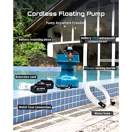 SEESII Cordless Floating Water Transfer Pump w/ 2-Pack 4000mAh Batteries & Charger $49.98 + Free Shipping