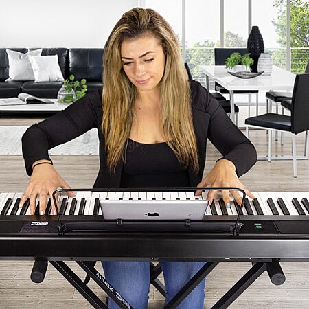 Model: RockJam 88 Key Digital Piano with Full Size Semi-Weighted Keys, Power Supply, Sheet Music Stand, Piano Note Stickers & Simply Piano Lessons
