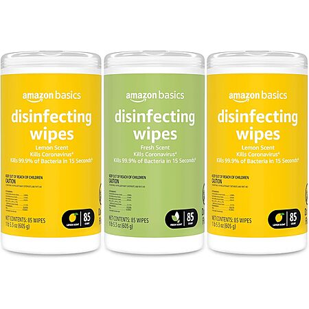 Select Accounts: 3-Pack 85-Count Amazon Basics Disinfecting Wipes (Lemon Scent & Fresh Scent) on sale for $9.58 - 15% when you clip the