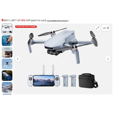 Potensic is selling the Potensic ATOM SE GPS Drone 4K Camera Lightweight Foldable FPV Transmission Bundle through their ebay store for $89.44.