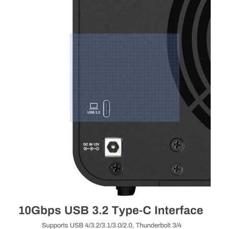 Plug-and-Play Compatibility: The D4-320 USB storage supports 4 individual disks (NO RAID function), and is plug-and-play, eliminating the need for drivers. It is highly compatible with MAC, Windows, and Linux operating systems. The USB Type-C interface supports various computer interfaces, including USB 3.0, USB 3.1, USB 3.2, Thunderbolt 3, and Thunderbolt 4.