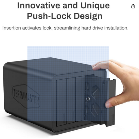 Tool-Free Hard Drive Management: Featuring a tool-free hard drive tray design, the D4-320 external HDD enclosure enables easy installation and removal of hard drives without requiring additional tools. Furthermore, the D4-320 incorporates TerraMaster's unique Push-lock design, automatically securing the hard drive tray upon insertion, preventing the hard drive from falling out or disconnecting.