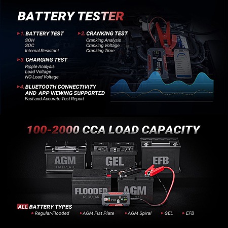 LOKITHOR JT400 2500A Jump Starter and 100-2000 CCA Battery Tester for Up to 8.5L Gas and 6.5L Diesel Engines $44.96 + Free Shipping