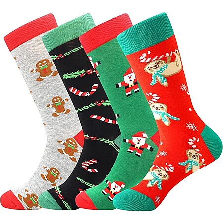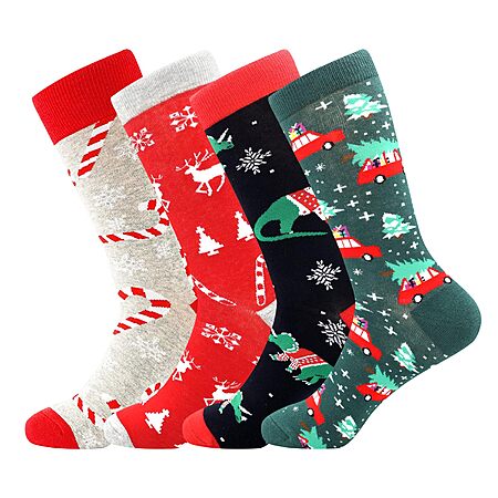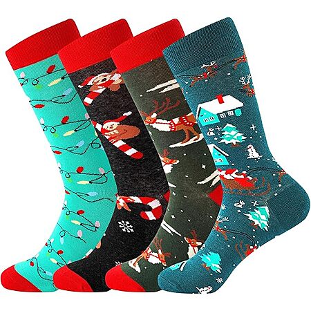 4-Pairs TOAMOUR Men's Christmas Socks (Assorted Prints) on sale for $8.99 - 50% off when you enter the promo code