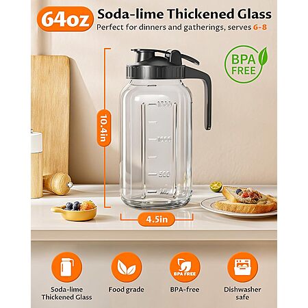 64-Oz VA1KENE Wide Mouth Glass Mason Jar Pitcher w/ Pour Spout Handle Lid (Black) $10.19 + Free Shipping w/ Prime or on $35+
