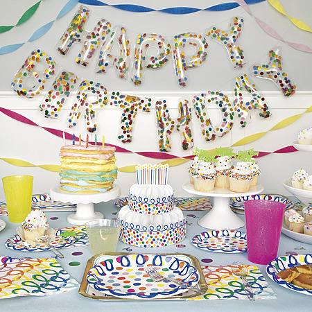 Way to Celebrate! Multicolor Squiggles and Dots Birthday Party Tableware and Decoration Kit for 10