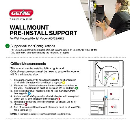 Genie B6172H Wall Mount Smart Garage Door Opener, DC Motor Lifts up to 14ft high 850lbs, Black $384.99