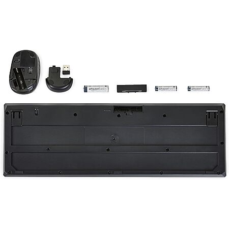Model: Amazon Basics Full-Sized Wireless Keyboard & Mouse Combo, 2.4 GHz USB Receiver, QWERTY Layout, Black