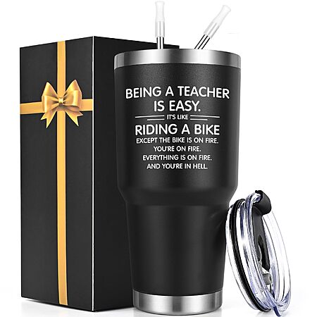 30oz Stainless Steel Tumbler with 2 Straws & Brush (Teacher) $5.99 @ Amazon