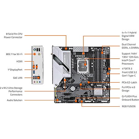 Model: GIGABYTE B760M GAMING PLUS WIFI DDR4 LGA 1700 Intel B760 M-ATX Motherboard with DDR4, 2* M.2, PCIe 4.0, Front USB 3.2 Gen 1 Type-C, WiFi 6 GbE LAN,...