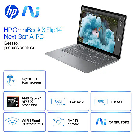 HP OmniBook X Flip: 14" FHD+ IPS Touch, Ryzen AI 7 350, 24GB LPDDR5, 1TB SSD $599.99