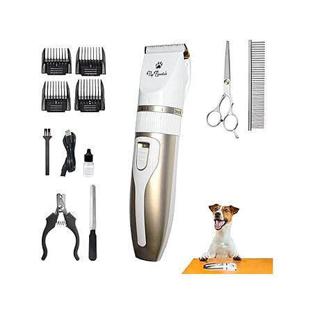 【Complete Grooming Kit】Includes everything you need to groom your pet from head to paws—trimmer with 4 guiding clippers, scissors, comb, nail clippers, and a nail filer. Perfect for a full grooming session!
