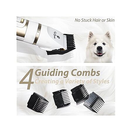 【Adjustable Trimmer with 4 Guiding Clippers】The trimmer comes with 4 detachable guiding clippers (3mm, 6mm, 9mm, and 12mm), so you can easily customize the length of your pet's fur for a professional finish.