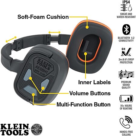 Klein Tools AESBH1 Behind-the-Head Bluetooth Ear muffs,NRR 23dB Hearing Protection, Works with Hard Hat, 70hr Runtime, for $35