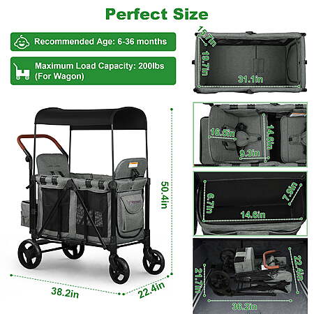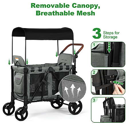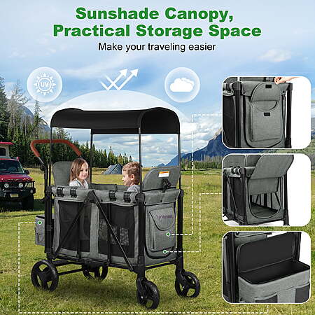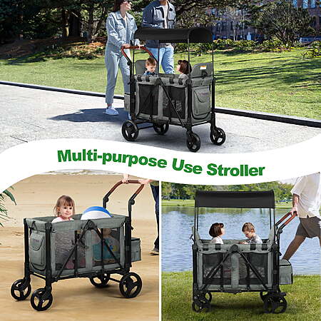 WisairtDirect via walmart.com has Vomeast Wagon Stroller for 2 Kids, 3-in-1 Stroller Wagon with Canopy, 5-Point Harness, Adjustable Handlebars, Removable Seat for Toddlers, Grey on sale for $169.79. Free shipping