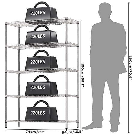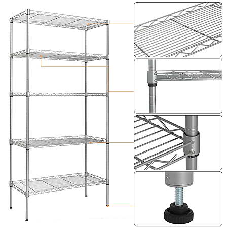 | Product Description: | ⭐Furnish your life with Ktaxon!⭐ This silver - grey home metal shelving unit is a practical and stylish storage solution for your household needs. Measuring 29.1 inches in length, 13.4 inches in width, and 59.1 inches in height, it is designed to fit well in various areas of your home, such as the garage, pantry, or laundry room. Constructed from iron, this shelving unit is sturdy and durable. The silver - grey finish not only gives it a modern and sleek look but also provides some protection against rust and corrosion. Without wheels, it offers a stable base for storing your items, ensuring that the shelving unit remains firmly in place. The five - layer design provides ample storage space, allowing you to organize different types of items. What sets this shelving unit apart is its freely adjustable shelf spacing feature. You can customize the distance between the shelves according to the size of the items you want to store. Whether you have large boxes, tall bottles, or small containers, you can easily adjust the shelves to create the perfect storage configuration. If you need other sizes, please click the link below to purchase: 5 Tier Layer 59"x21"x11.5" Storage Rack, Black Features [5-Tier Rack—Ample Storage Capacity] The five - layer structure of this shelving unit offers abundant storage space. You can store a wide variety of items, from gardening tools in the garage to canned goods in the pantry. [Adjustable Shelf Spacing] The ability to freely adjust the shelf spacing is a highly practical feature. It enables you to adapt the shelving unit to the size of your items. For example, if you have a collection of large - format books, you can increase the spacing between the shelves to accommodate them.On the other hand, if you need to store small boxes or containers, you can reduce the spacing for more efficient use of space. [Sturdy Iron Construction—Durable] Made from high - quality iron, this shelving unit is built to last. The iron material provides excellent structural support, ensuring that the shelves can withstand heavy loads without bending or breaking.The silver - grey finish not only enhances the aesthetic appeal but also helps protect the iron from rust and corrosion, making it suitable for long - term use in different home environments. [Space - saving Design] With dimensions of 29.1"×13.4"×59.1", this shelving unit is designed to fit into various spaces in your home.Its relatively narrow width of 13.4 inches allows it to be placed against a wall or in a corner, making it ideal for rooms with limited space.The vertical height of 59.1 inches maximizes the use of vertical space, providing a large storage capacity without taking up too much floor area. [Versatile Use] This shelving unit is extremely versatile and can be used in multiple areas of your home.In the laundry room, it can hold detergent, fabric softener, and other laundry essentials. In the garage, it can store tools, sports equipment, and automotive supplies.In the pantry, it can keep your food items organized. Its adaptability makes it a valuable addition to any household. Specifications Material: Carbon Steel & PP(Accessory) Color: Silver Gray Dimensions: (29.13 x 13.39 x 59.06)" / (74 x 34 x 150)cm (L x W x H) Tier Quantity: 5 Tiers Weight: 254.68oz / 7.22kg Weight Capacity: 1100 lbs Package Includes 5 x Shelves 4 x Top Tubes 4 x Middle Tubes 4 x Bottom Tubes 42 x Clamping Piece 1 x Installation Instruction ✅WARM PROMPT: Please confirm the product size before purchasing, to make sure the size of our product is in line with your requirements! ✅After-sale Service: Since the satisfaction of customer is always our primary concern,so if you have any problem when using this product,please feel free to contact us via email,we're always happy to help! |