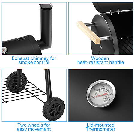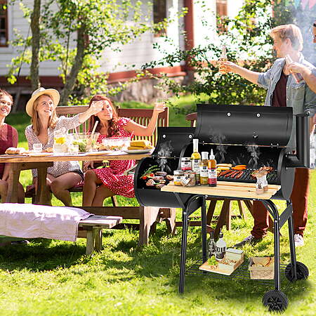 $85.5*:Segmart BBQ Charcoal Grill, 45.28-inch Length Portable Barbecue Grill, Offset Smoker Barbecue Oven with Wheels & Thermometer for Outdoor Picnic Camping Patio Backyard