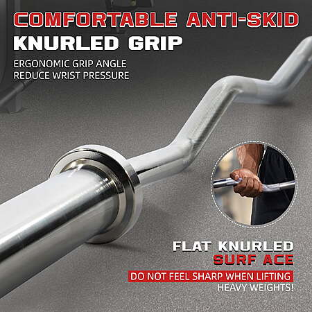 - Ergonomic Curl Bar Design – Angled grip reduces wrist strain while allowing natural hand positioning for effective bicep and tricep training.