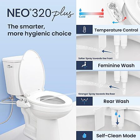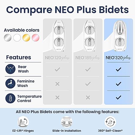 LUXE Bidet NEO 320 Plus - Warm Water, Dual Nozzle - Gold And Rose