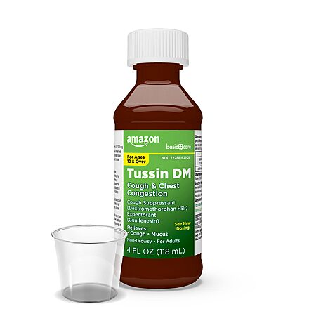 Amazon Basic Care Tussin DM, Cough Plus Chest Congestion Syrup for Adults and Ages 12 and Over, Raspberry Flavor, 4 fl oz (Pack of 1) $1.60 S&S Clip Q
