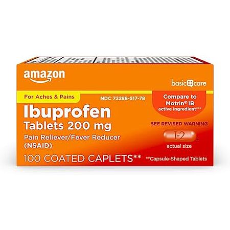 Model: Amazon Basic Care Ibuprofen Tablets, 200 mg, Pain Reliever and Fever Reducer, For Arthritis, Toothache, Backache and More, 100 Count