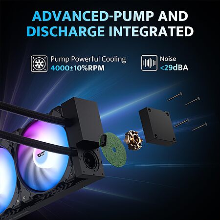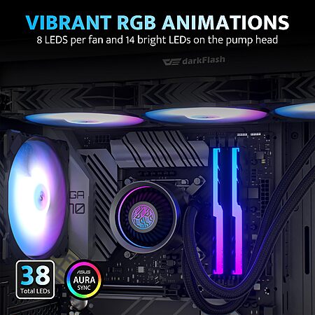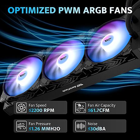 Model: darkFlash DN360A AIO CPU Liquid Cooler, High-Performance Pump, ARGB Sync, PWM Fans, with Customizable darkFlash Logo Display, Compatible with Intel 1851/1700, AMD AM4/AM5 (Black, 360mm AIO)