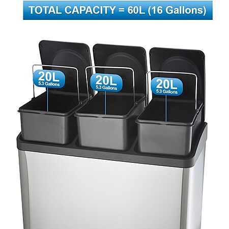 16-Gal Step N' Sort 3 Compartment Stainless Steel Kitchen Trash & Recycling Bin (Black or Silver) $44.89 + Free Shipping
