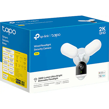 2800-Lumen TP-Link Tapo TC55 2K QHD Wired Floodlight Wi-Fi Security Camera (White) on clearance for