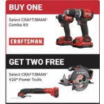 Buy $179 Craftsman V20 2 Tool Kit, Get 2 select Craftsman V20 Tools (Tool Only) Free Shop All Items While Supplies Last. Must Add All Items To Cart.