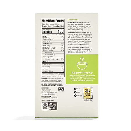 32-Count 1.41-Oz 365 by Whole Foods Market Organic Instant Oatmeal (Apple Cinnamon) $8.20 + Free Shipping w/ Prime or on $35+
