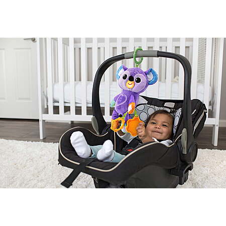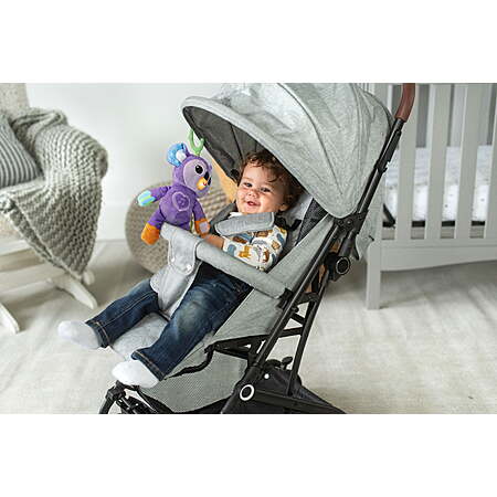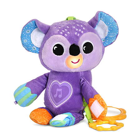 | Product Description: | Get koala-ty hugs any time with the VTech Grab & Go Koala! Build early language skills with 50+ songs, melodies, sounds and phrases. Easily attach the interactive koala to an infant carrier or stroller bar with the included ring or the hook-and-loop paws for on-the-go fun. Babies love to explore sights and textures, and this take-along toy provides opportunities for discovery with soft plush, fluffy and crinkly ears, an embroidered face, colorful patterns and a textured ring to pull. As your baby grabs and looks into the baby-safe mirror attachment, they begin to develop self-awareness along with motor skills. Grab, cuddle and go! Intended for ages 3+ months. Requires 2 AAA batteries. Batteries included for demo purposes only. New batteries recommended for regular use. Explore soft plush, fluffy and crinkly fabrics, and contrasting colors and patterns Attach the koala with the included ring or hook-and-loop attachments on its paws to an infant carrier or stroller Engage in self-discovery play with the attached baby-safe mirror; help build early language skills with 50+ songs, melodies, sounds and phrases Grasping and batting at the ring and pressing the heart button promote motor skill development and reward action with sounds and music Intended for ages 3+ months; requires 2 AAA batteries; batteries included for demo purposes only; new batteries recommended for regular use This colorful, cuddly, take-along koala from VTech delights babies with songs and phrases and makes a great baby shower gift, gender-reveal party gift, birthday present or holiday gift |