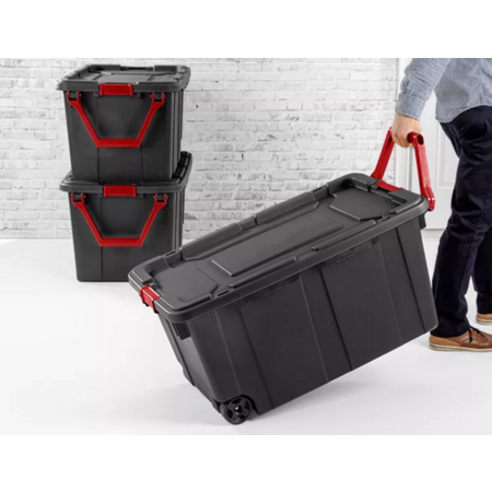 40-Gal Sterilite Wheeled Industrial Storage Tote w/ Handle (Black)