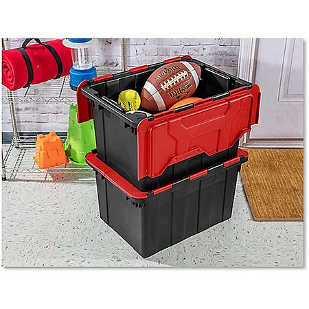 Product Details: - Bring order to garages, basements, and attics with the heavy-duty design and unique features of the Industrial Tote line. Be confident that stored items will stay protected in the durable 12 Gallon Hinged Lid Industrial Tote. The ideal all-purpose solution for active storage needs. It is perfect for storing sports equipment, lawn supplies, gardening tools, camping gear and more