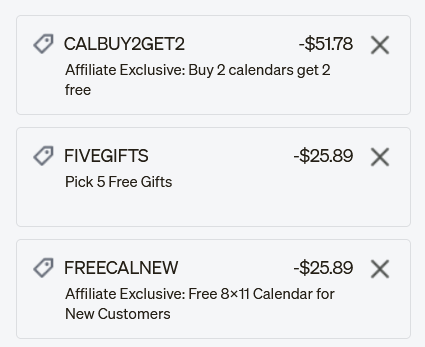 - CALBUY2GET2 (buy 2 get 2 free calendars - expires 12/30/25)