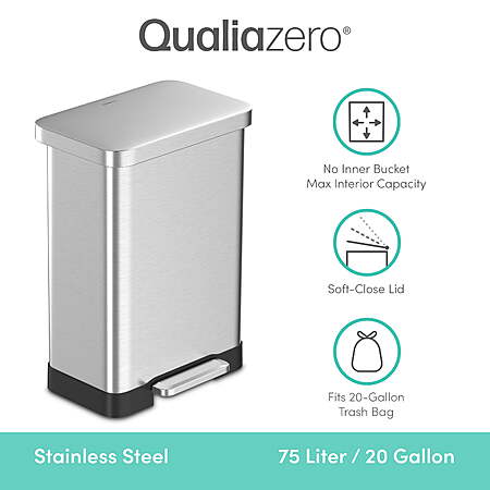 Walmart has the Qualiazero 20 Gallon (75L) Stainless Steel Step-On Trash Can with Slow-Close Lid, Kitchen Garbage Bin, Fingerprint-Resistant, Rectangular Profile - Silver on sale for $49.88. Shipping is free w/ Walmart+.