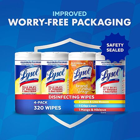 Select Accounts: 4-Pack 80-Count Lysol Disinfectant Wipes (Variety Pack) on sale for $9.49 - $2.85 (30%) off when you 'clip' the