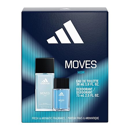 $9.59*:Adidas Moves for Him Giftset,1 fl oz EDT + 2.5 fl oz Body Fragrance, Notes of Green Apple, Cedarwood, Musk, Men's Fragrance, Long Lasting, Sporty Fragrance, Travel Size