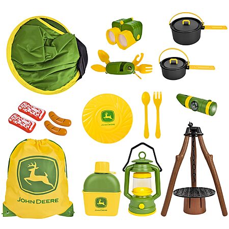 Amazon.com has John Deere Pop-Up Camping Tent, 18 Piece Set Includes Canteen, Plates, Utensils, Play Food, Pots, Binoculars, Lantern, and Flashlight, Indoor and Outdoor Play on sale for $26.99. Shipping is free w/ Prime or on $35+ orders.