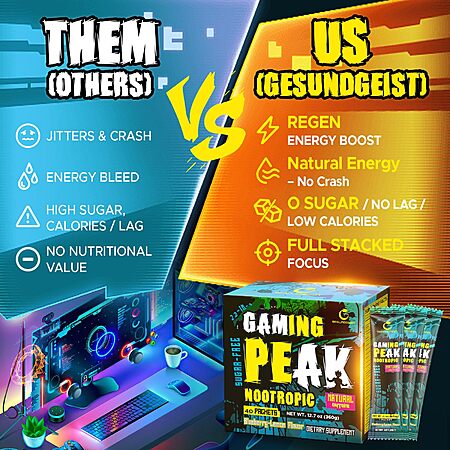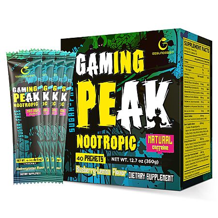 Gesundgeist Energy Drink Powder – Gaming Focus Formula with Nootropics & Natural Caffeine – for Attention, Accuracy & Reaction – Sugar-Free, Vegan – Blueberry Lemon – 40 Individual Sticks on sale for