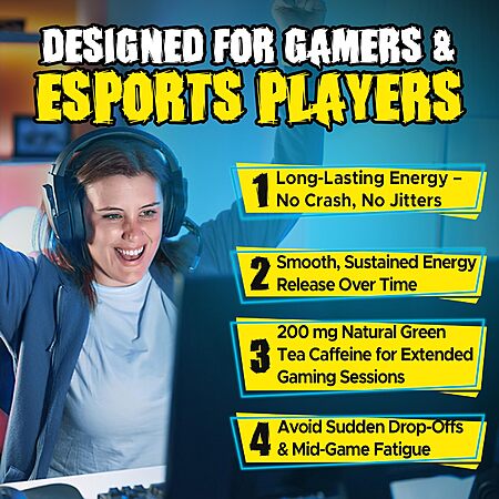 Features:- Stay Sharp & Dominate the Game: This Energy Drink Powder features a powerful blend of L-Tyrosine, Phosphatidylserine, and Lion's Mane Extract, ingredients commonly included in gaming formulas associated with mental performance. Designed for gamers who demand sustained engagement and responsiveness in high-stakes battles