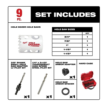 Northern Tool Milwaukee Hole Dozer Hole Saw Kit, 9-Pc., Model# 49-22-4006