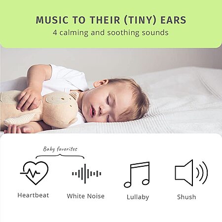 - 4 Soothing Sounds: Choose from 4 relaxing sounds: lullaby, white noise, heartbeat, and shushing; adjustable volume for masking unwanted background noise; speaker faces down toward the baby