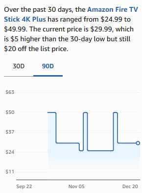 For comparison, the lowest price seen on Amazon in the last 90 days was $24.99 (see screenshot).