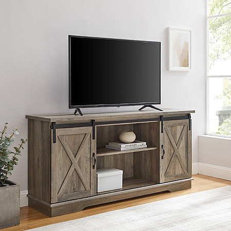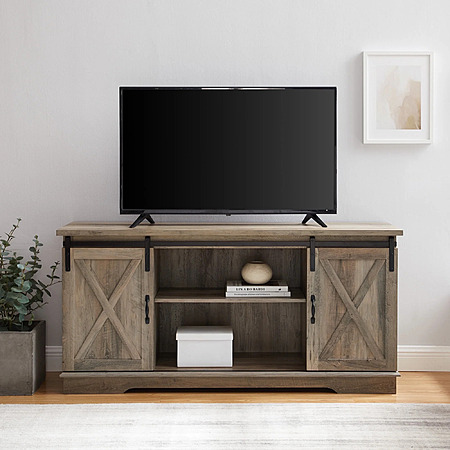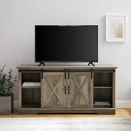 Walker Edison Sliding Farmhouse Barn Door TV Stand for TVs up to 65", Grey Wash