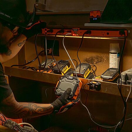 • 5 grounded 120V AC outlets, 2 USB-A ports, and 1 USB-C port delivering power to tools, equipment, and other devices on the jobsite.